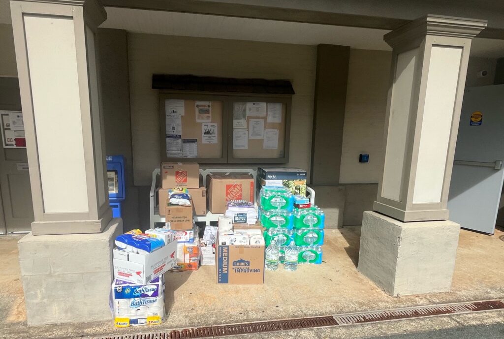 Maxwell set up shop in the second floor meeting room and has been collecting everything from non-perishable food items and baby food to toiletries and feminine hygiene products to cleaning supplies. He said volunteers from North Carolina have requested medical supplies, pet supplies and outdoor tools, including rakes, shovels and tarps.