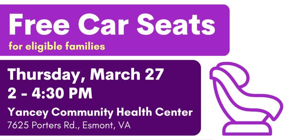 On Thursday, March 27th, the Blue Ridge Health District will be at the Yancey Community Health Center from 2-4:30pm with FREE CAR SEATS for eligible families!