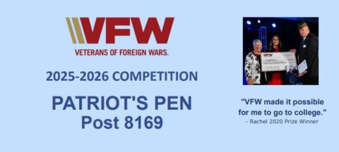 The 2025–2026 Patriot’s Pen Essay Competition is now open through VFW Post 8169! This annual scholarship program gives 6th, 7th, and 8th grade students the